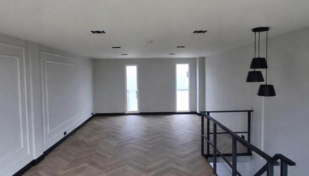 In Apeldoorn transformeerden wij een garagebox tot een moderne kantoor- en opslagruimte. De begane grond is voorzien van een geëgaliseerde en gecoate vloer, terwijl de bovenverdieping is afgewerkt met een plak pvc vloer. De ruimte is strak afgewerkt en de elektra is functioneel aangelegd, aangevuld met luxe verlichting voor een prettige werkomgeving. Het resultaat is een praktische en stijlvolle ruimte die perfect aansluit op de wensen van de gebruiker.