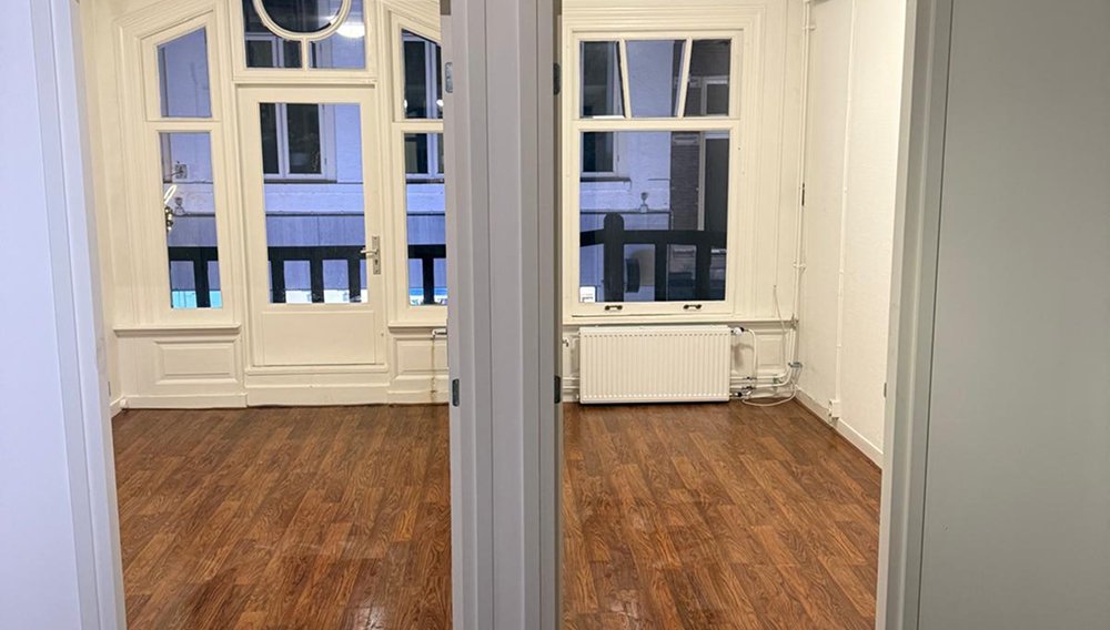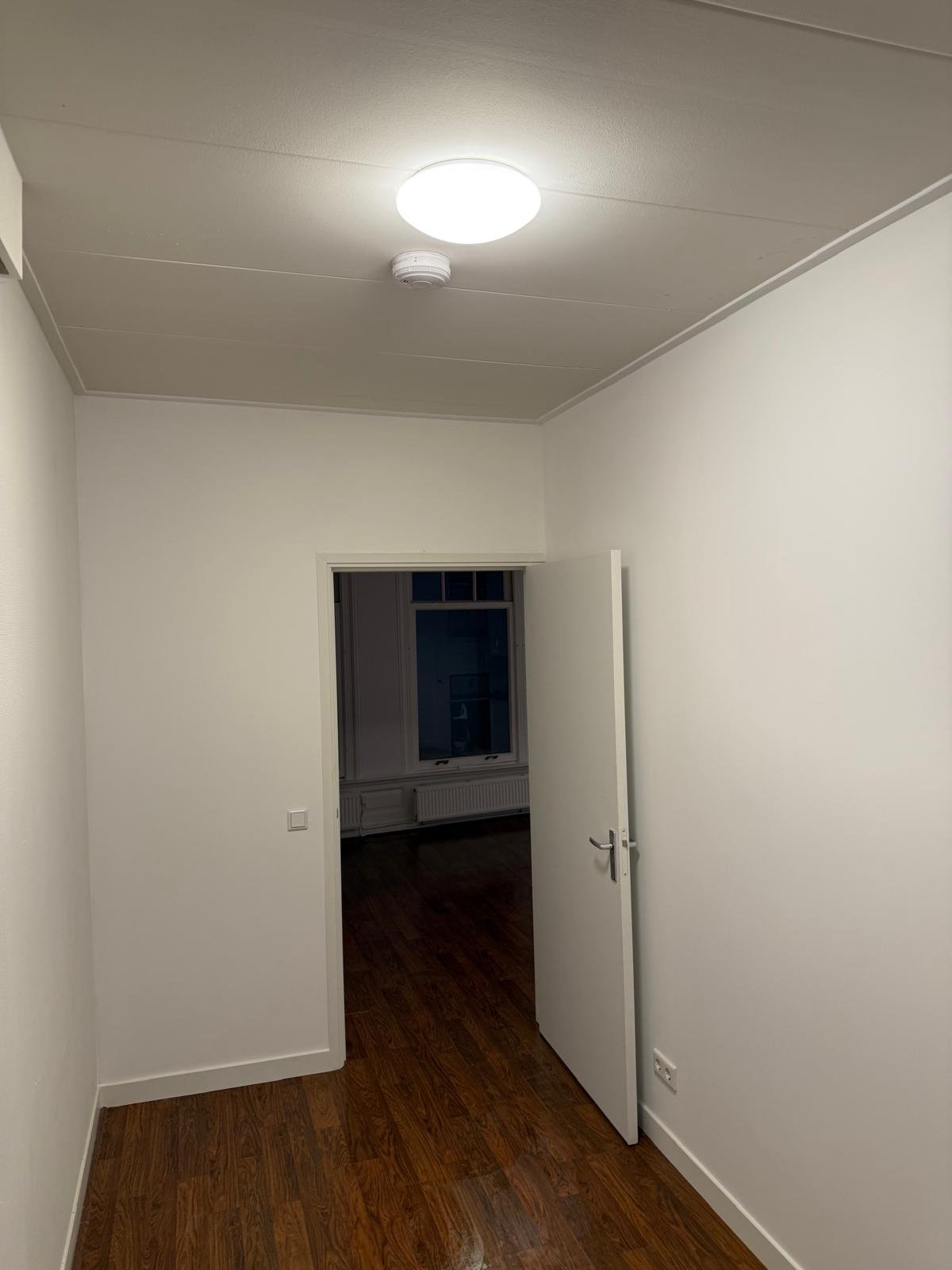 In Utrecht realiseerden wij twee studentenkamers met oog voor comfort en karakter. We plaatsten geïsoleerde tussenwanden en legden de cv- en elektra-installatie aan. Het oude kozijn en de deur zijn zorgvuldig teruggebracht, waardoor de authentieke uitstraling behouden bleef.