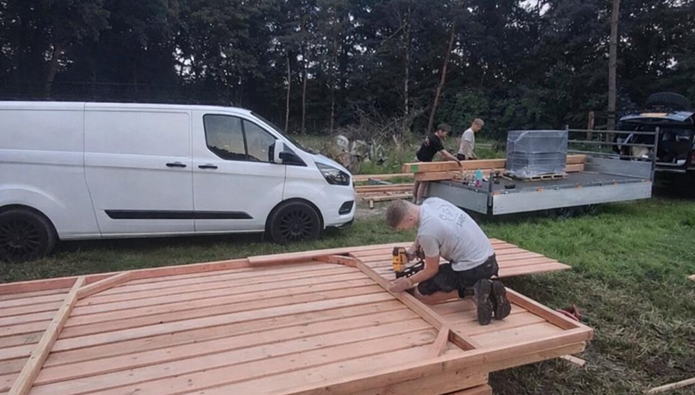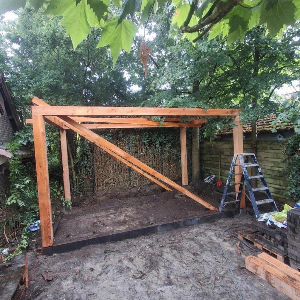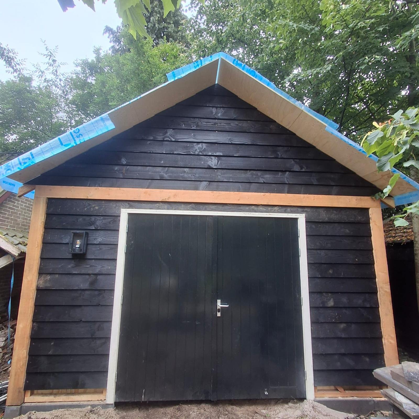In Apeldoorn realiseerden wij een stijlvol tuinhuis met een robuuste uitstraling. De constructie is opgebouwd uit sterke Douglasbalken, gecombineerd met zwarte Zweedse rabatplanken voor een modern contrast. Dankzij de vooraf geprefabriceerde wanden konden we efficiënt werken. Het tuinhuis is voorzien van elektra en verlichting en afgewerkt met grote openslaande deuren, waardoor binnen en buiten mooi in elkaar overlopen. Het resultaat is een duurzame en sfeervolle buitenruimte.